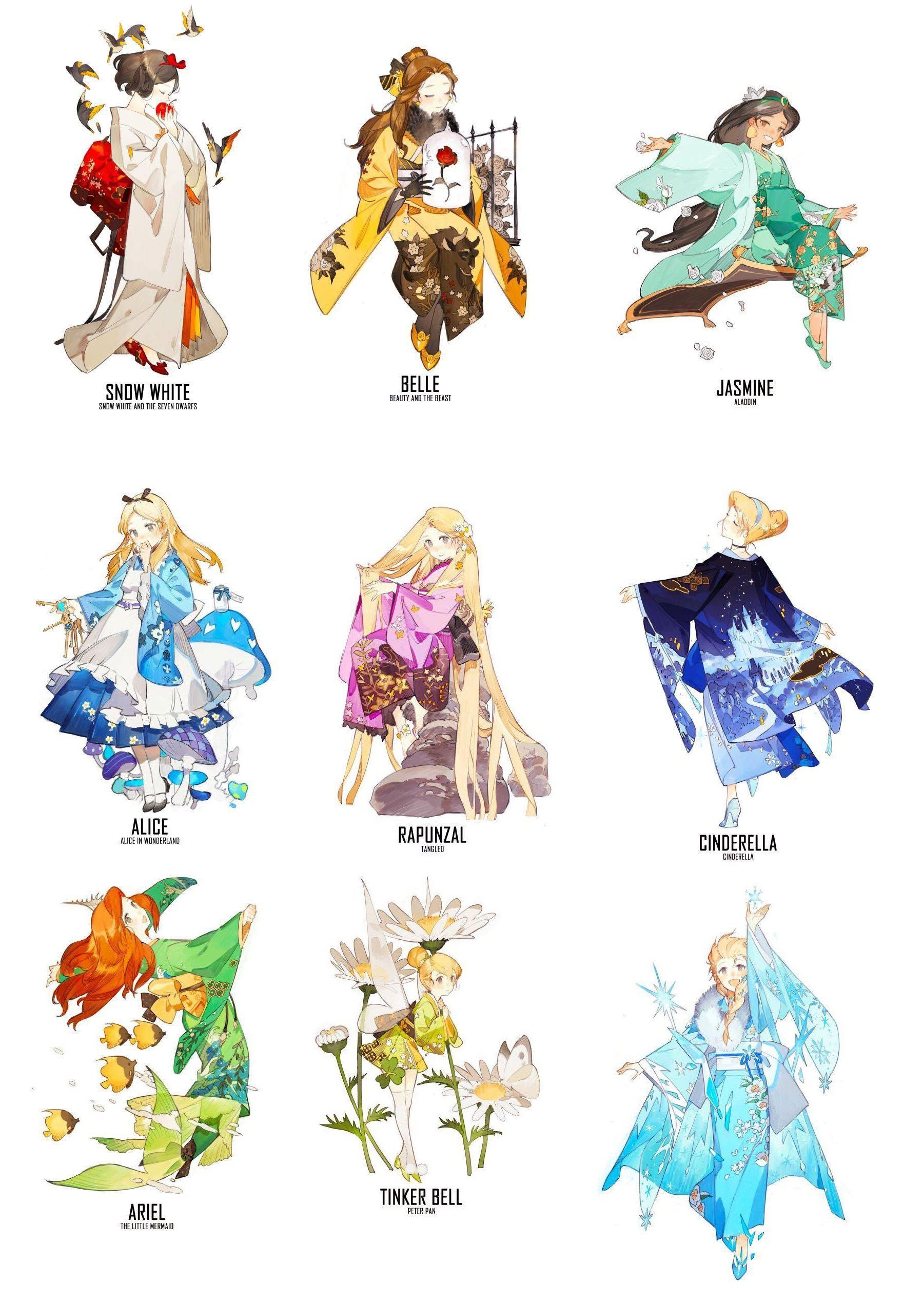和の要素とチビキャラがディズニープリンセスを可愛くアレンジ 和服を着 チビキャラとなったキュートなディズニープリンセス達 ジャポンタ